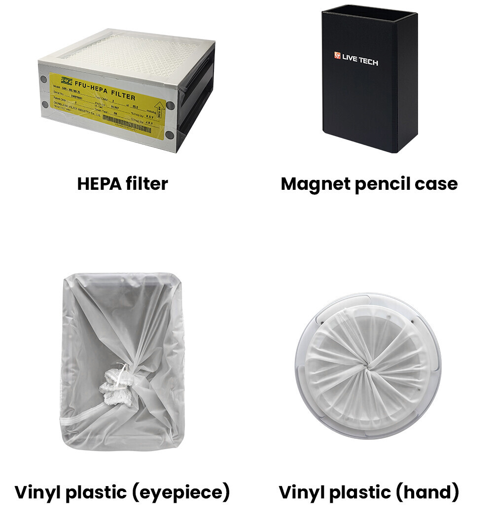 내부 작업 공간은 H13 등급 HEPA 필터를 통해 지속적으로 정화되며, ≥0.3μm 입자 99.95% 제거율을 갖습니다.