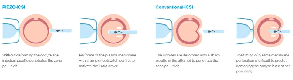 세포막을 정확히 관통하도록 제어된 piezo-assisted injection 펄스를 통해 세포 손상을 최소화합니다. 이 방식은 기존의 ICSI 기법보다 난자 변성 위험을 현저히 줄이며, 수정 및 배아 발달 결과를 향상시키는 데 기여합니다.