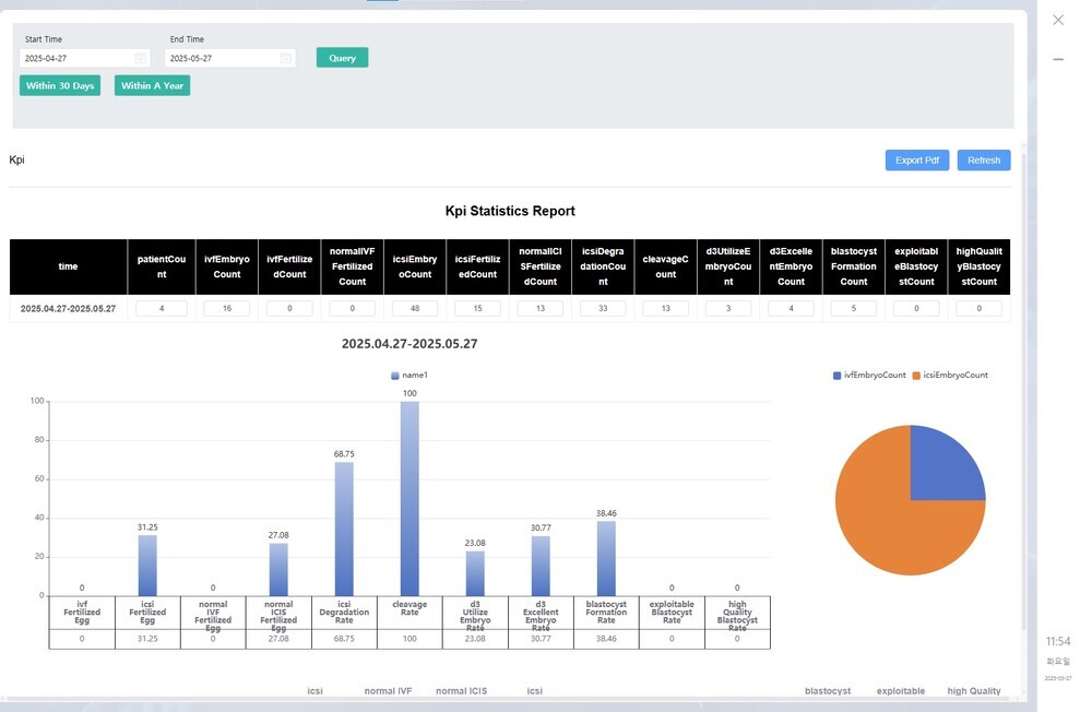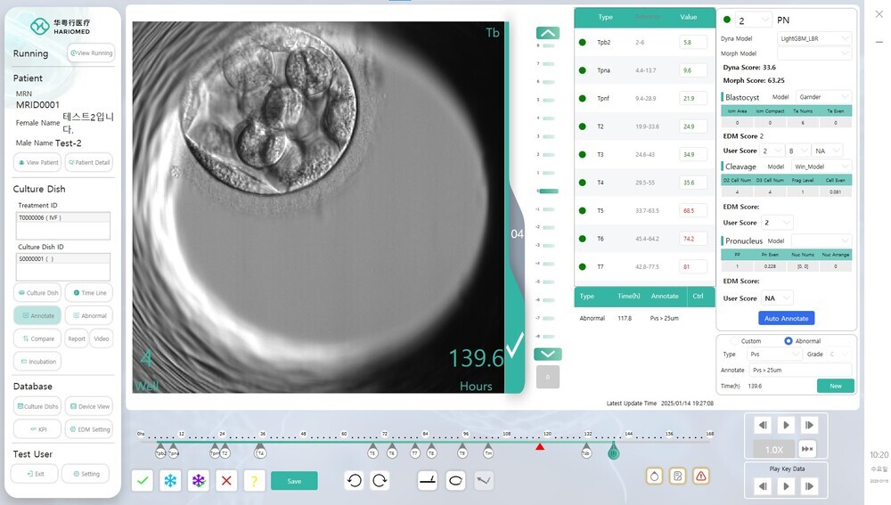 AI 기반의 소프트웨어가 배아의 성장 과정을 실시간으로 분석하고, 배아 등급 분류 및 선별 작업을 도와줍니다.